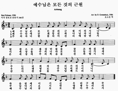 익숙한 멜로디의 찬송가가 울려 퍼지고 있다. 바로 우리의 아리랑 멜로디다.