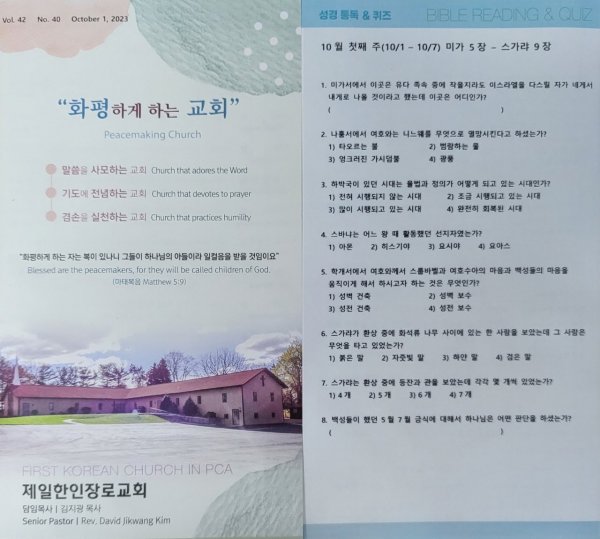 10월1일 주일광고/성경통독퀴즈