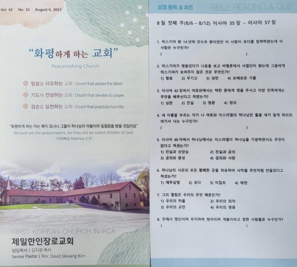 8월6일 주일광고/성경통독퀴즈