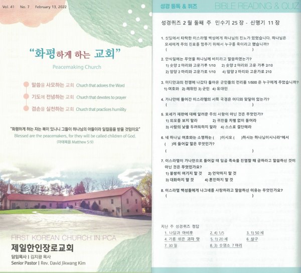 2월 13일 주일광고/성경 통독퀴즈